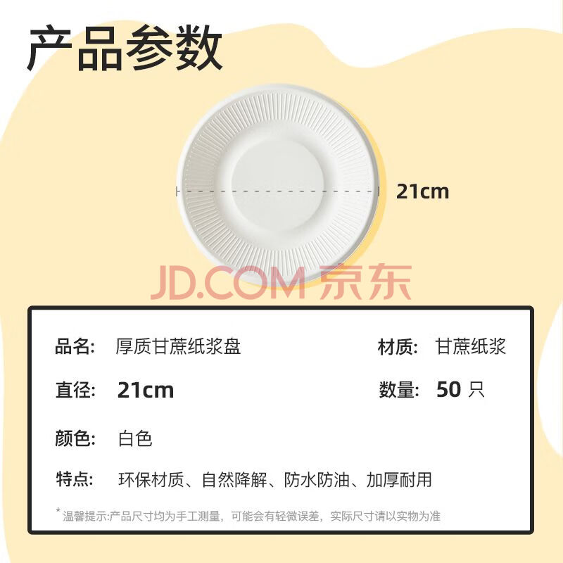 商品相册:特美居(temeiju)8英寸一次性盘子蛋糕纸盘碟加厚可降解餐盘户外餐具50只装21cm第
