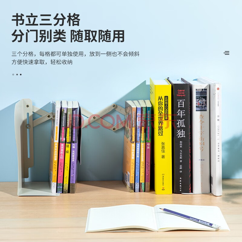 商品相册:得力(deli)22cm可伸缩桌面桌面书立置物架开学必备礼物书收纳桌上 学习用品书架 单联可控 米白 78631第