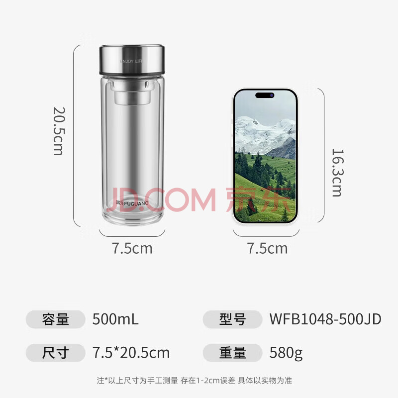 商品相册:富光玻璃杯双层带茶隔大容量水杯 高档商务泡茶杯 高硼硅杯子500ml第