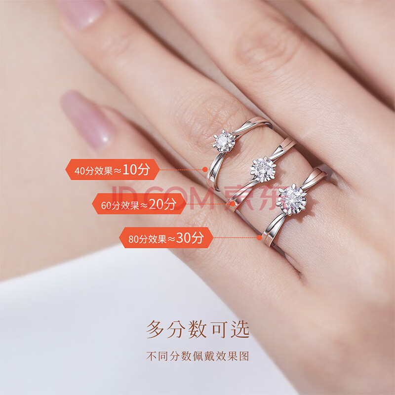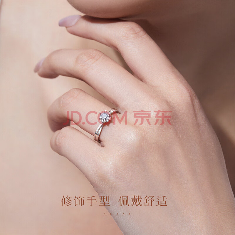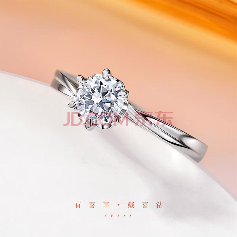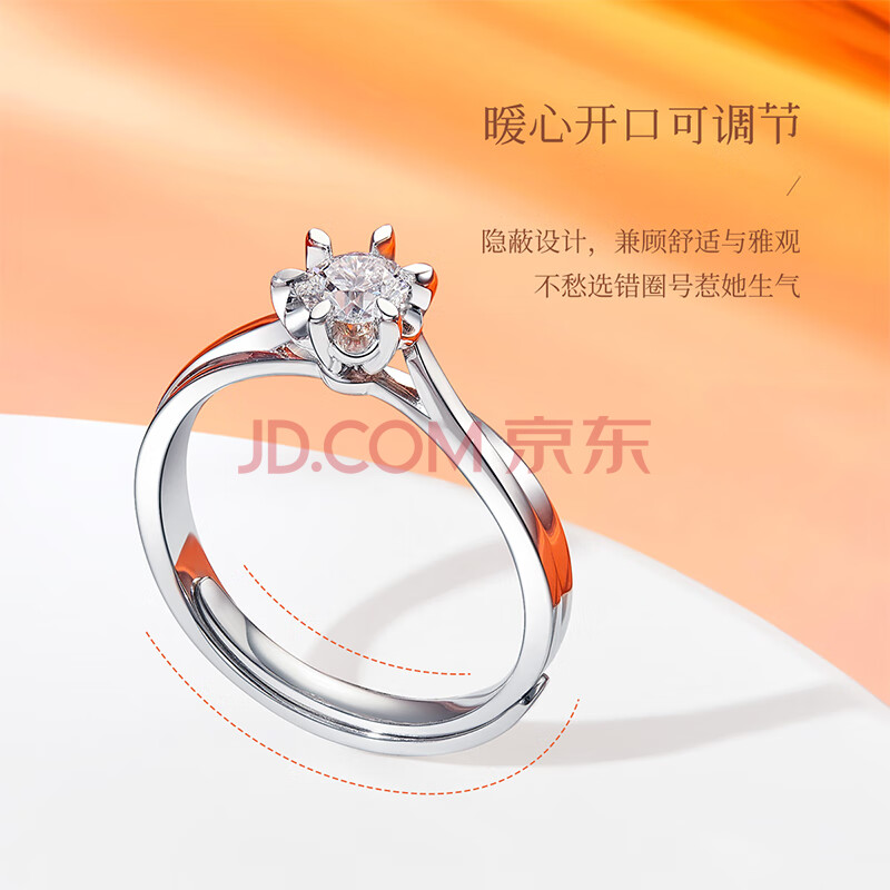 商品相册:喜钻生日礼物铂金雪花活口可调节钻戒结婚求婚钻石戒指第