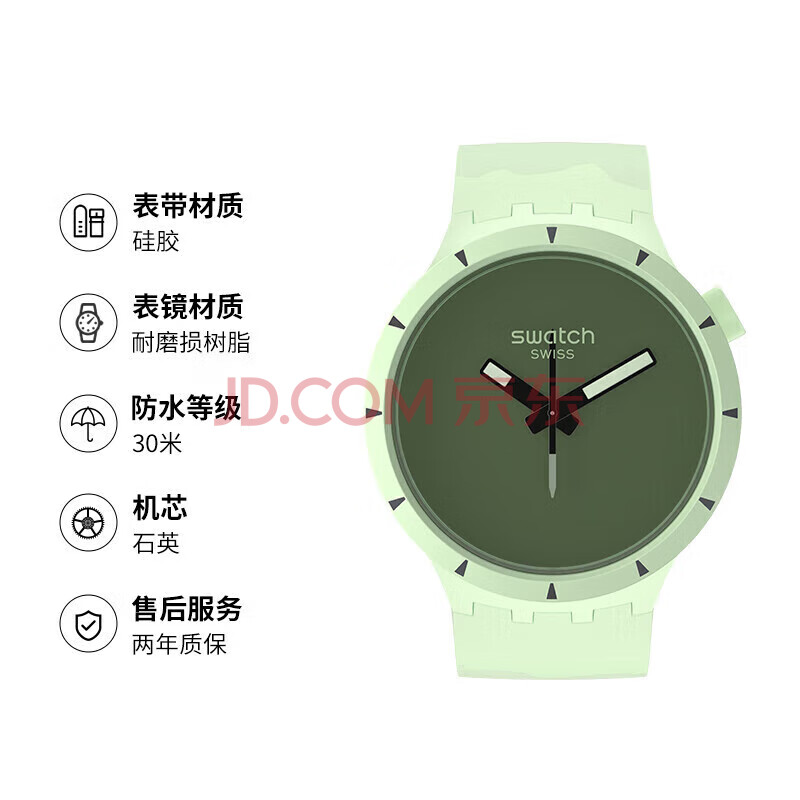 商品相册:斯沃琪(Swatch)瑞士手表 植物陶瓷 寻秘森林潮流生日礼物夜光石英表SB03G100第