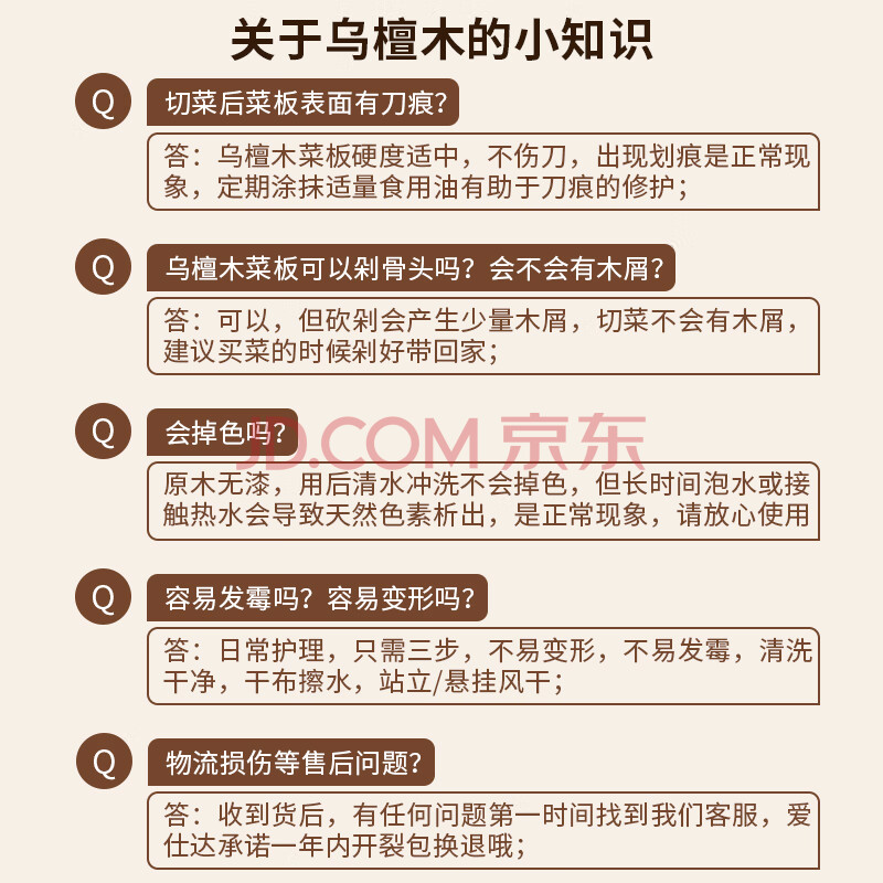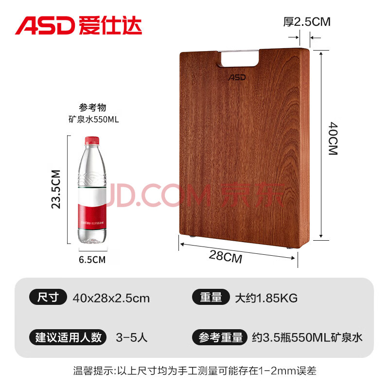商品相册:爱仕达(ASD)菜板进口乌檀木99%抗菌砧板整木加大加厚双面防霉面板40*28*2.5cm第1张/共8