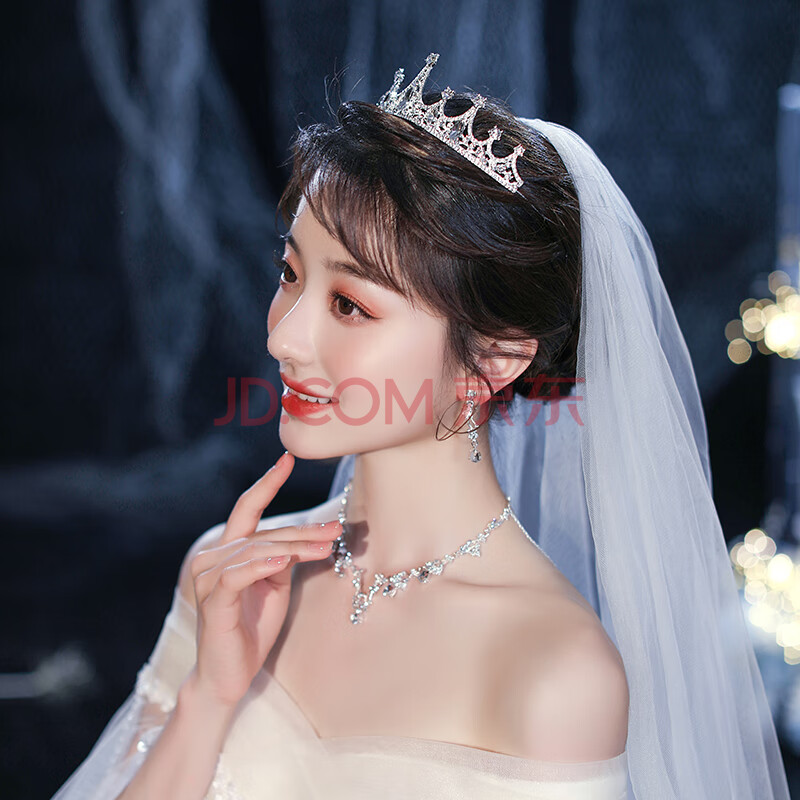 商品相册:缔晶 皇冠成人新娘头饰套装白色头纱素纱网红十八岁成年礼公主王冠女超仙森系婚纱求婚女友结婚登记发饰第