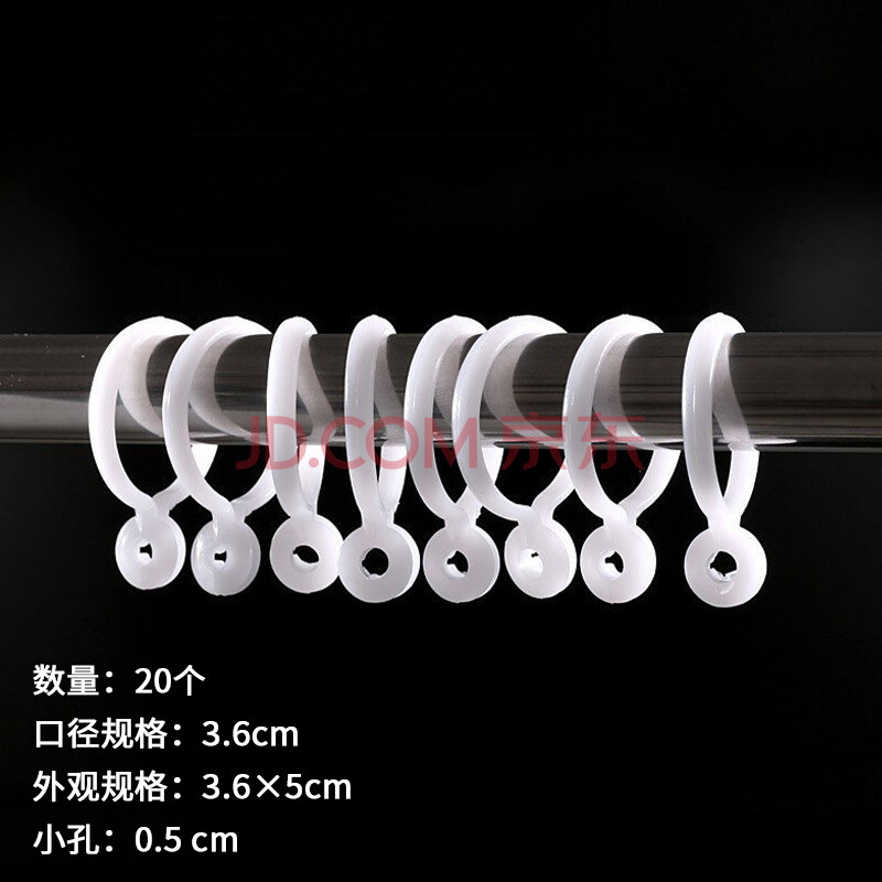 商品相册:富居窗帘开口吊环罗马杆专用活扣挂环浴帘环白色 20个装第1张/共3