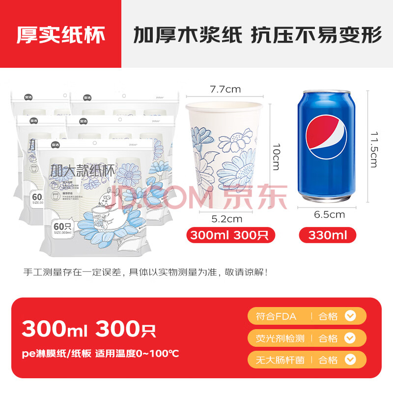 商品相册:宜洁(yekee) 一次性加厚纸杯茶杯300ml*300只 家用商务办公一次性杯子JD-7029第