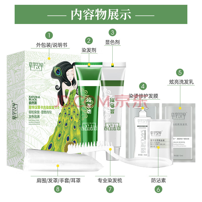 商品相册:章华(SAVOL)汉草卡古染发霜142ml 自然黑色(遮白显色均匀染发剂染发膏)第