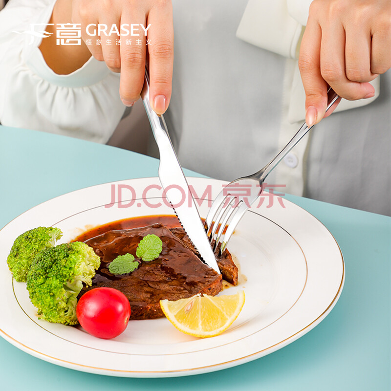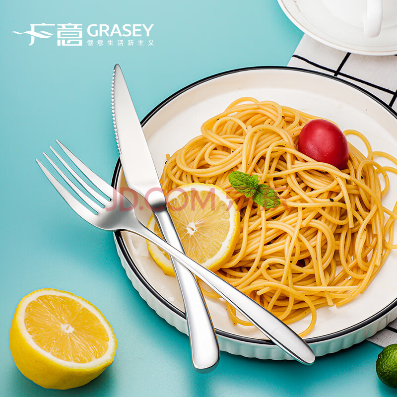 商品相册:广意316L不锈钢牛排刀叉 西餐餐具 加长加厚 雅致两件套 GY7691第