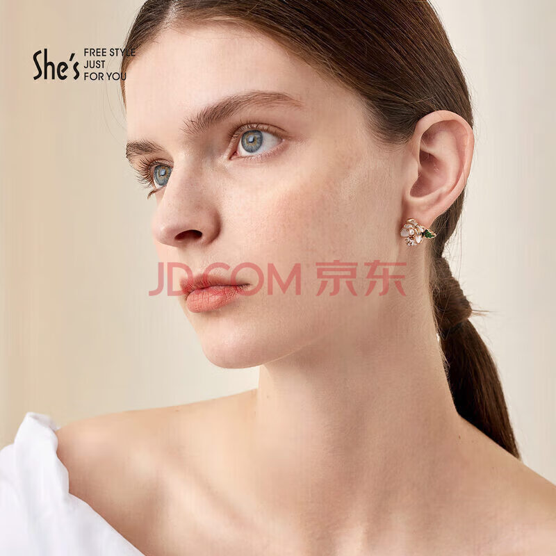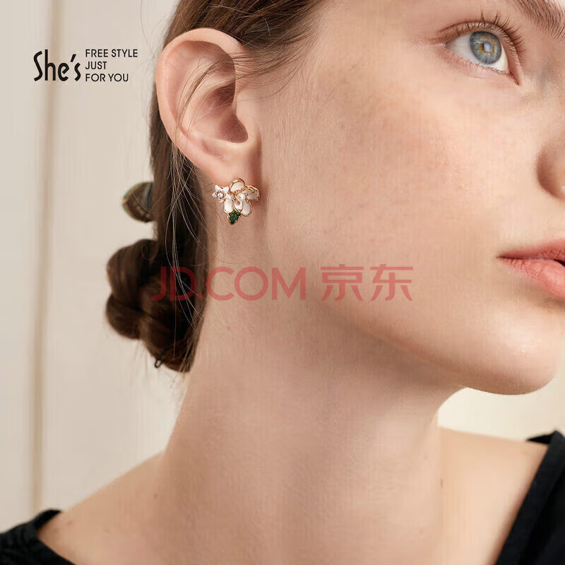 商品相册:She's茜子栀子花仿珍珠耳环耳饰滴油花朵耳钉女生日礼物送女友第
