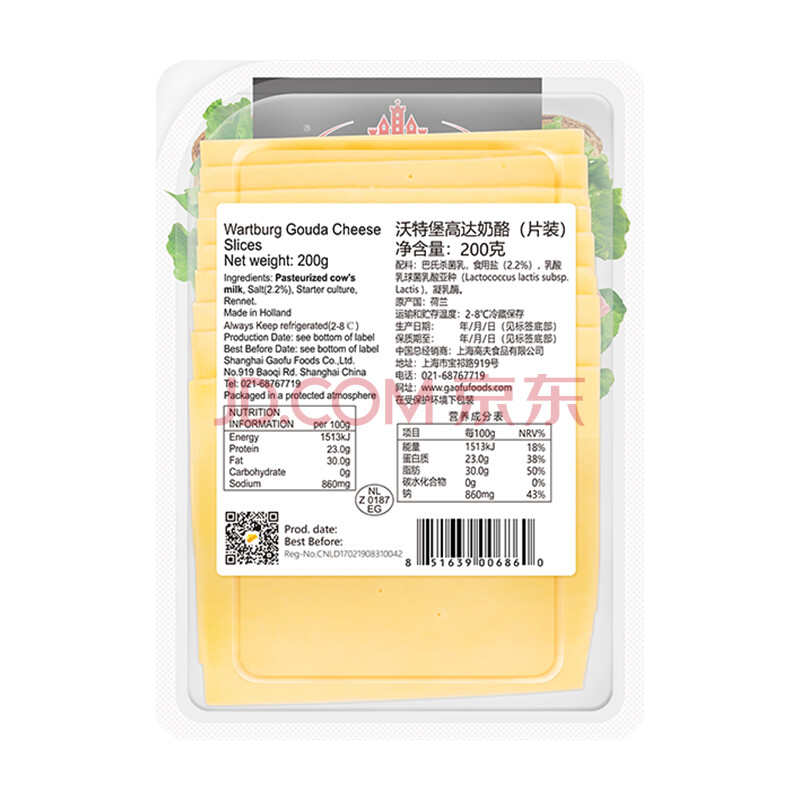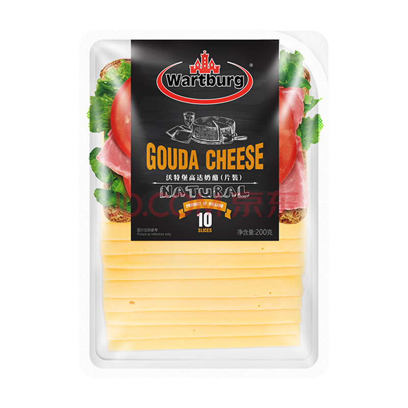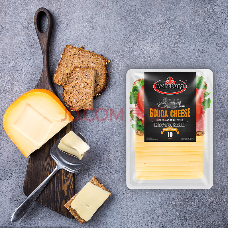 商品相册:沃特堡(wartburg)荷兰进口 奶酪片 天然原制 芝士片 200g 冷藏 早餐 三明治 零食第
