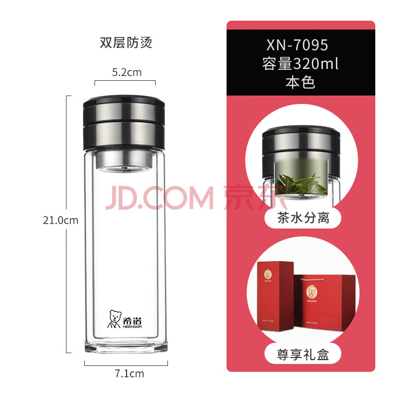 商品相册:希诺双层玻璃杯男茶水分离杯高档泡茶杯子车载水杯XN-7095本色 320mL第