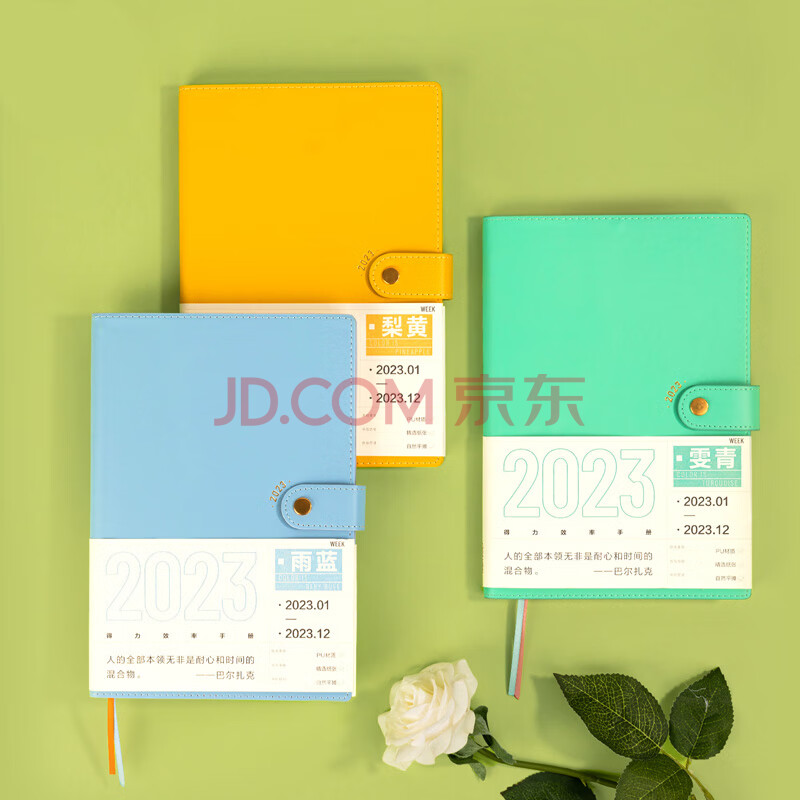 商品相册:得力(deli)2023年日程本效率手册A5高颜值日程本todolist计划本日历记事本年历本笔记本本子 绿色BP102第