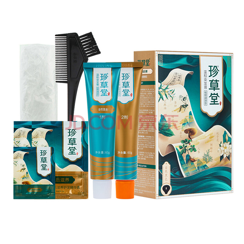 商品相册:珍草堂棕黑色在家染发膏植物健康不伤发温和盖白贵妇级京东自营旗舰店第