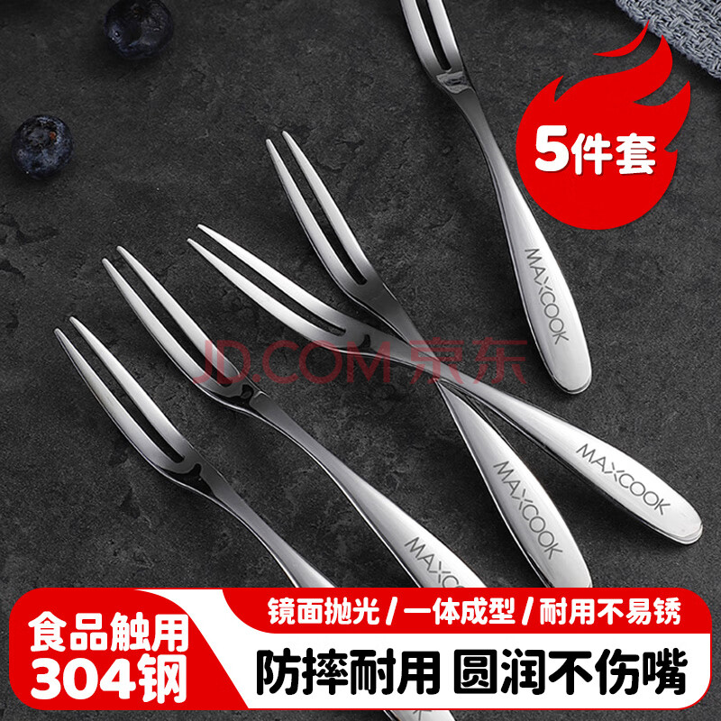 商品相册:美厨(maxcook)304不锈钢水果叉 甜品叉月饼叉5件套 MCGC795第