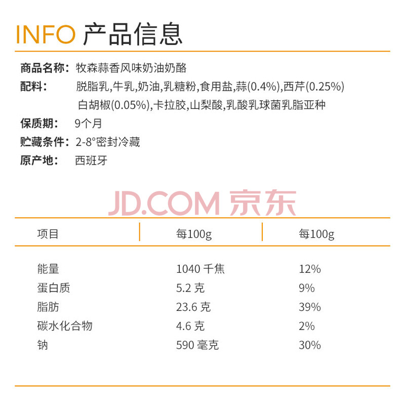 商品相册:牧森(SHPSON)西班牙进口 蒜香奶油奶酪200g/盒 面包涂抹 即食干酪 烘焙原料第