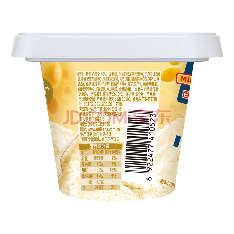 商品相册:百吉福(MILKANA) 一杯芝士下午茶奶酪零食 法式甜品原味70g*6杯 冷藏 休闲零食第