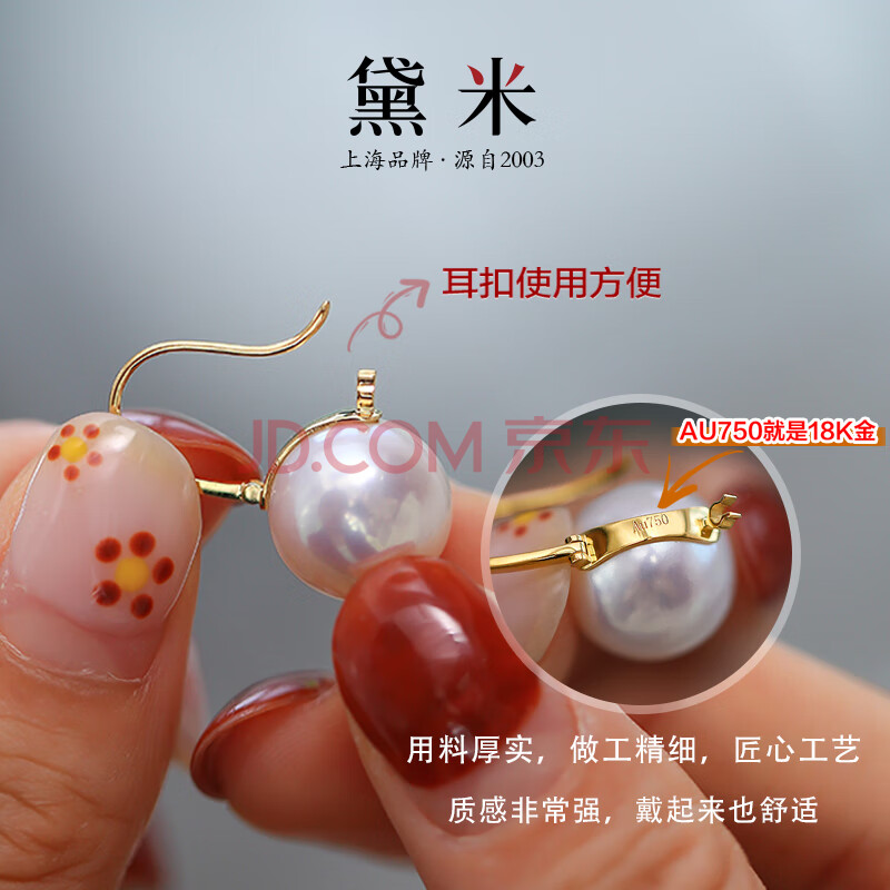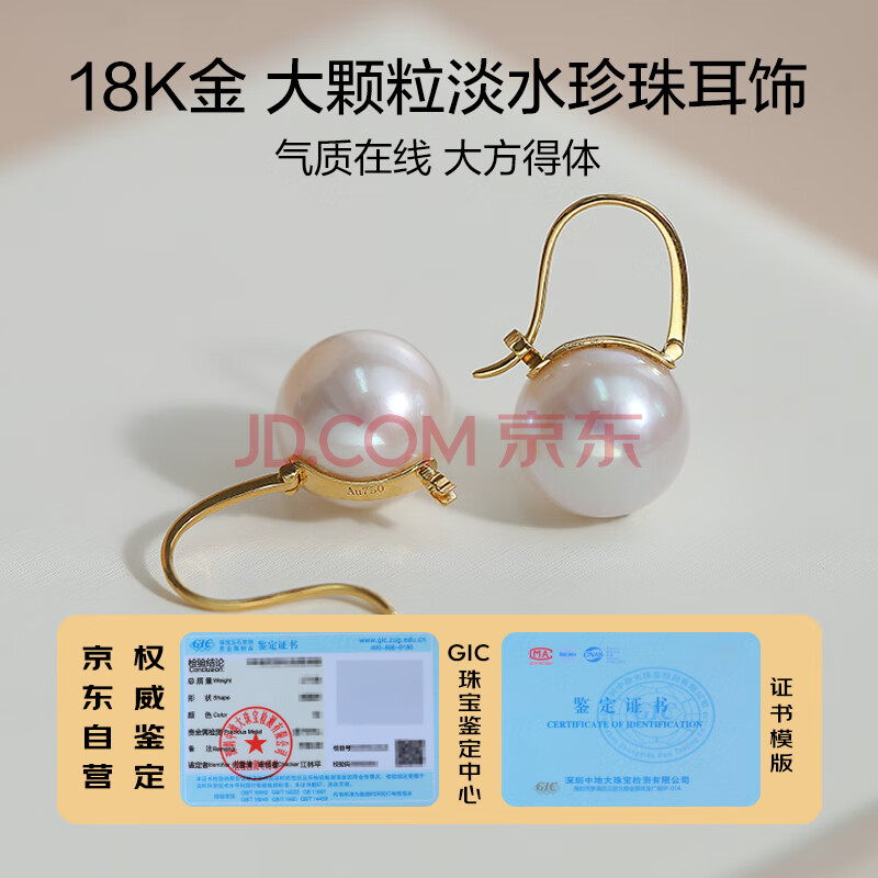商品相册:黛米18K金正圆11-12mm高品质淡水珍珠耳钉母亲节礼物送老婆爱人第