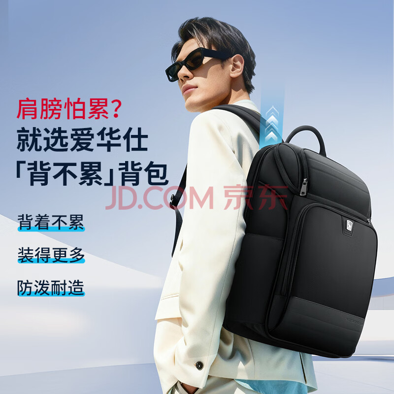 商品相册:爱华仕背不累移动办公双肩包16英寸电脑包男士背包女旅行差旅通勤包黑色第