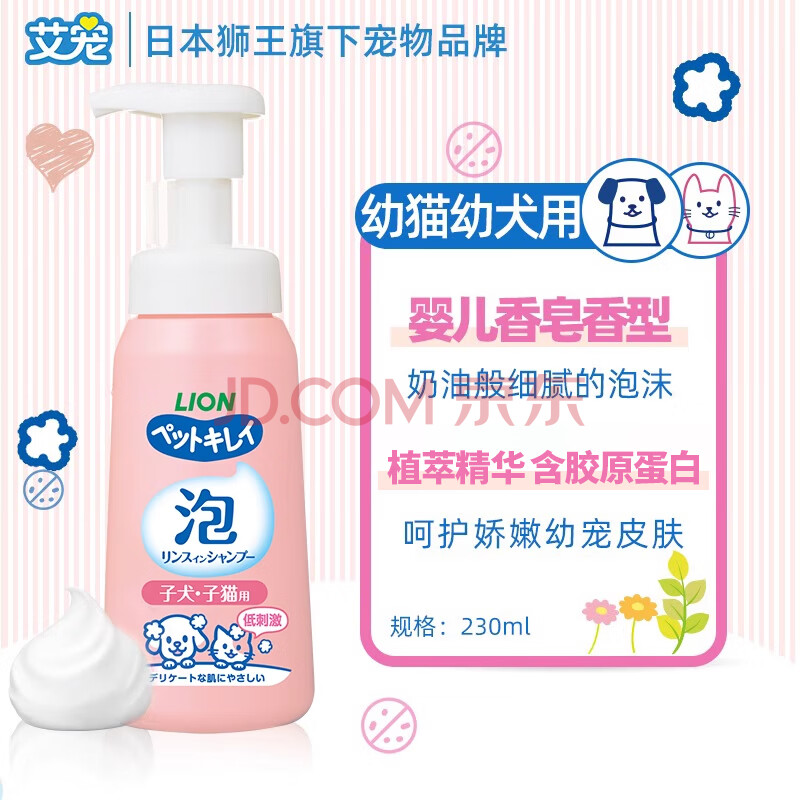 商品相册:狮王艾宠宠物沐浴露香皂香替换装230ml幼猫狗用除臭味温和低刺激第