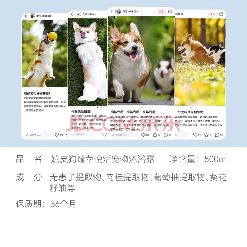 商品相册:嬉皮狗 柯基专用狗狗沐浴露宠物香波浴液成幼犬通用除味洗澡液 500ml第