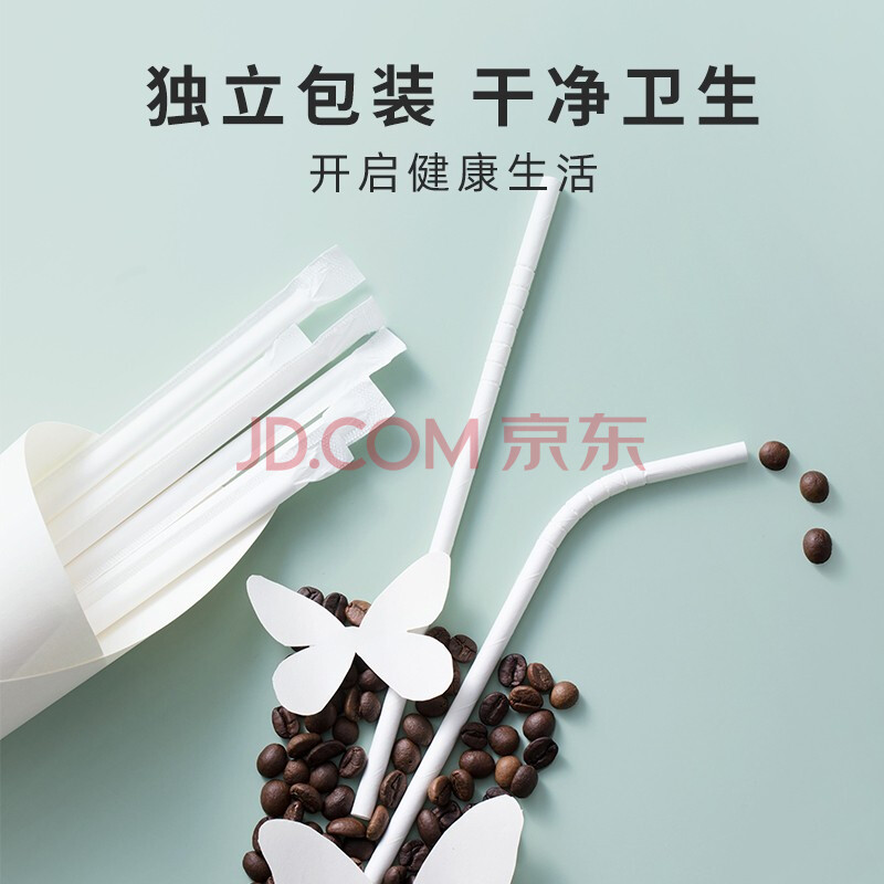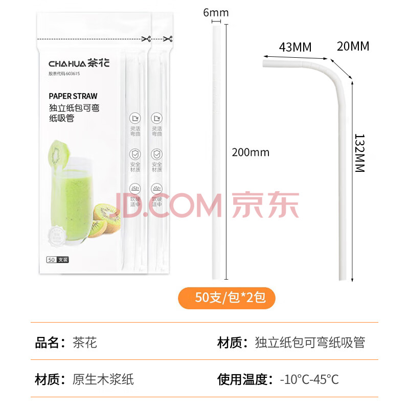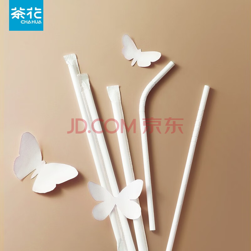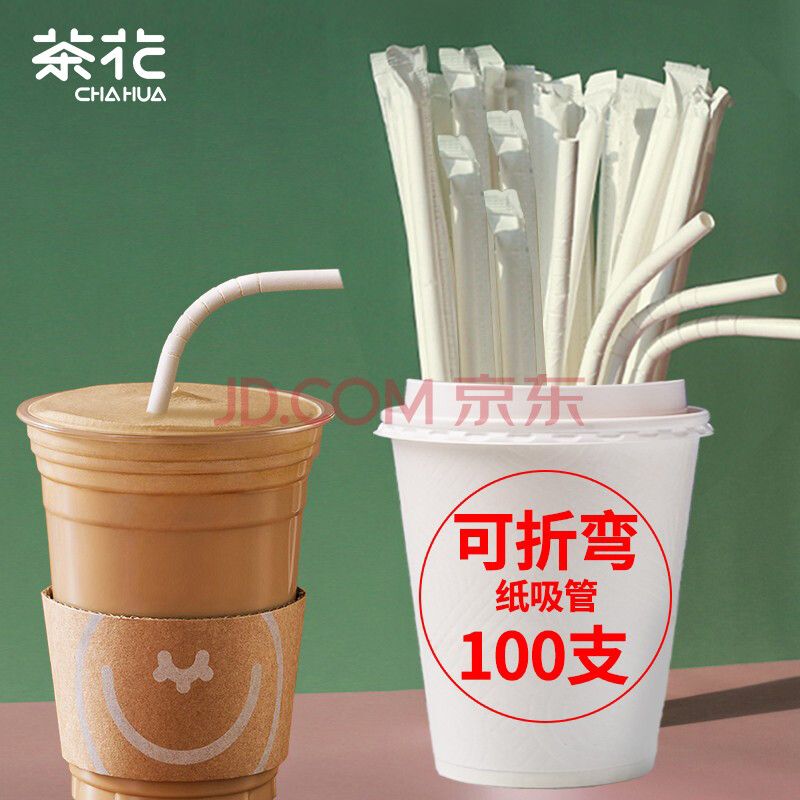 商品相册:茶花一次性吸管独立装弯头 可降解纸吸管咖啡奶茶老人儿童食品级100支第