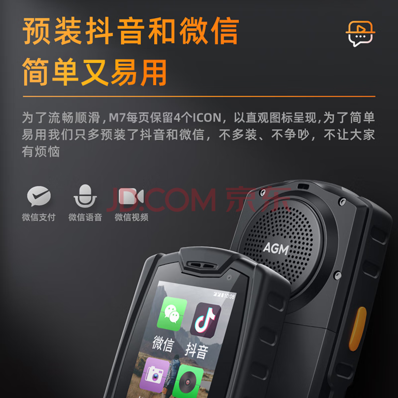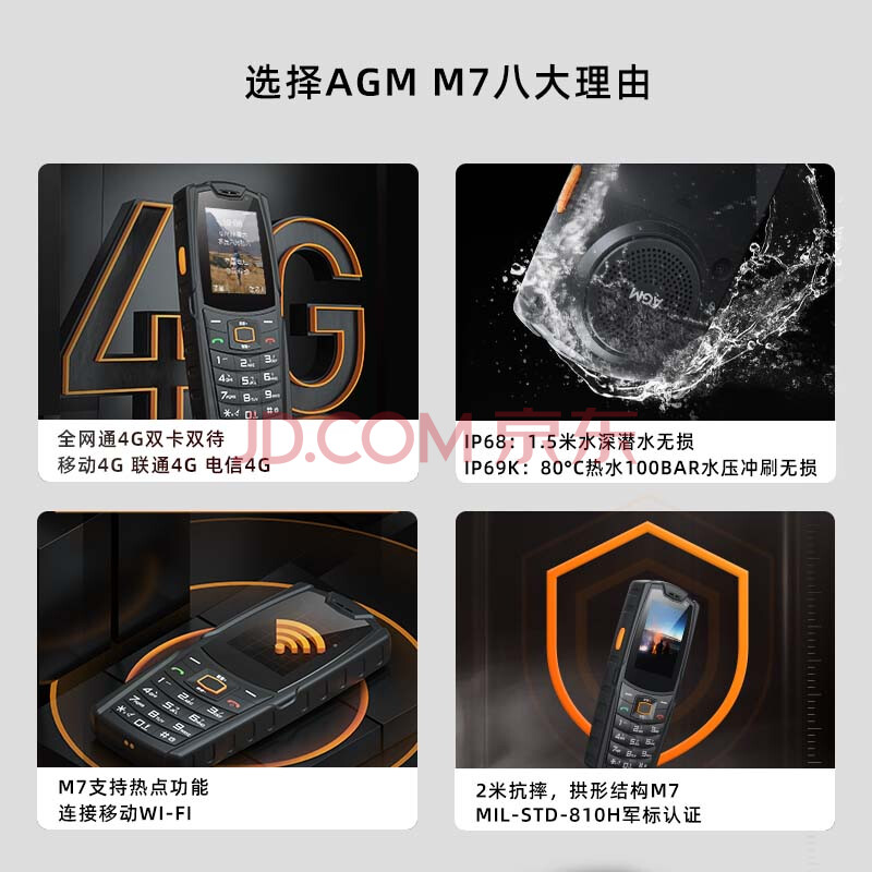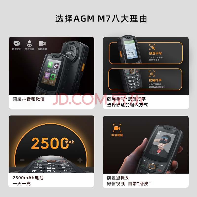 商品相册:AGM M7 三防老人手机 全网通4G老人机双卡双待 触屏手写直板按键学生备用功能机 黑色第