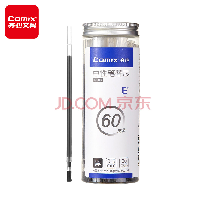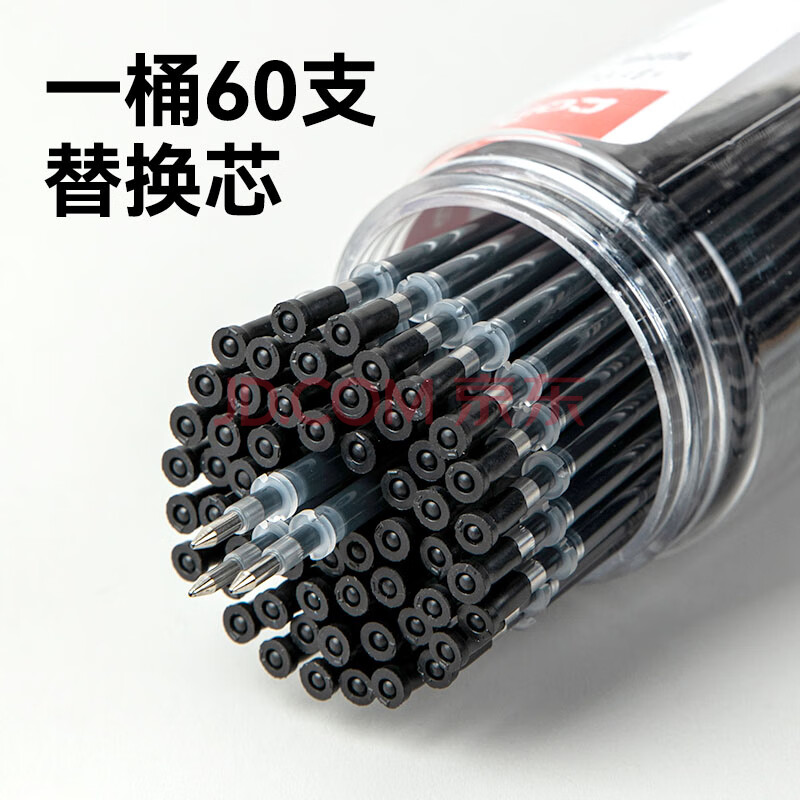 商品相册:齐心(comix)60支装 拔帽中性笔笔芯替芯子弹头 R960 黑色0.5mm第