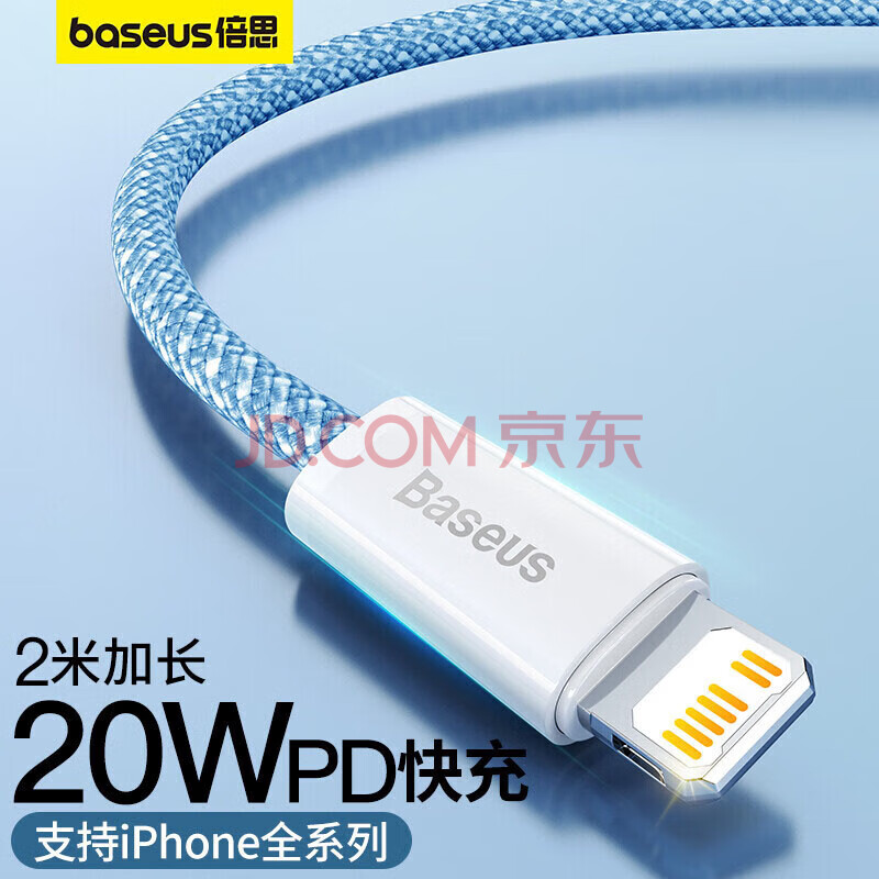 商品相册:倍思苹果数据线PD20/18W快充线Type-c to lightning充电线适用iPhone14/13Pro Max/12/11手机车载2米蓝第