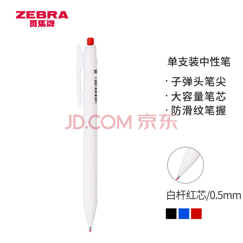 商品相册:斑马牌(ZEBRA)0.5mm按动中性笔 彩色学生绘画签字笔标注填色手账笔水笔 JJ29-R1 白杆红芯 单支装第