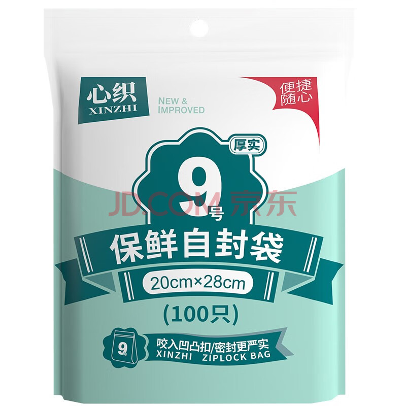 商品相册:心织 食品自封袋100只 9号20*28cm保鲜加厚密封袋 防水PE透明封口袋 口罩收纳袋密实袋包装袋第