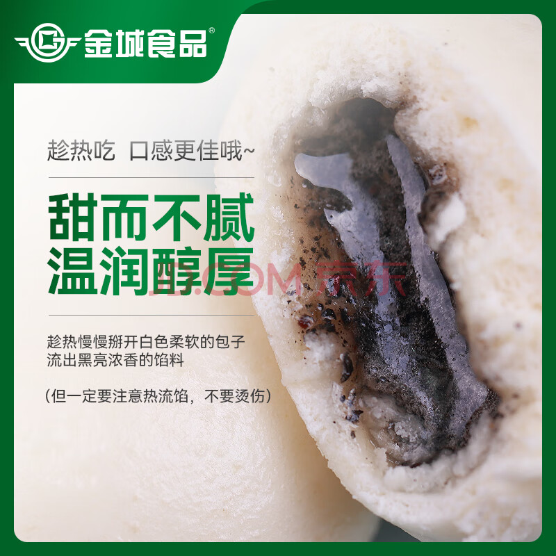 商品相册:金城食品芝麻流沙包960g 24只 黑芝麻馅 早餐包子 广式点心早茶速食半成品第