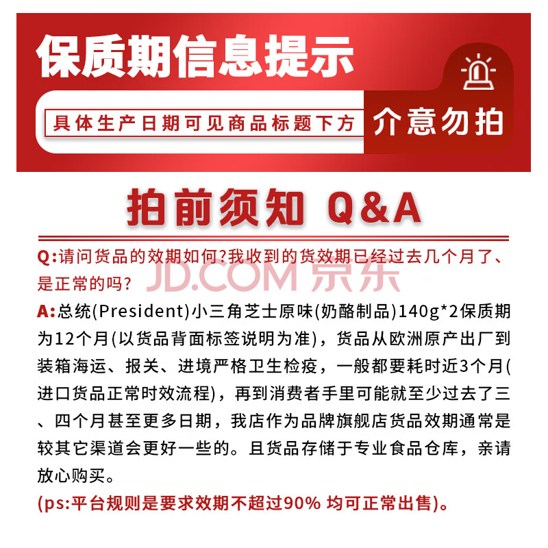 商品相册:总统(President)法国进口小三角芝士原味(奶酪制品)140g*2一包 面包 烘焙 零食第