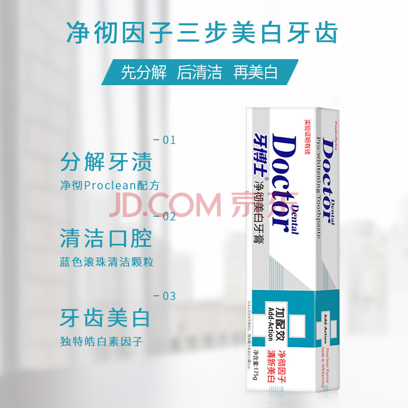 商品相册:牙博士加配效(净彻美白)牙膏美白牙齿清新口气175g*1支第
