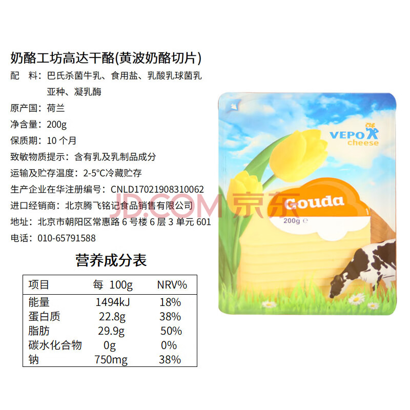 商品相册:奶酪工坊高达(黄波切片)干酪片200g荷兰进口 原制早餐即食【山姆同厂】第