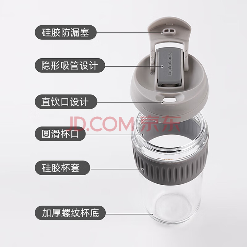 商品相册:乐扣乐扣(LOCK&LOCK)咖啡杯手持玻璃杯男女学生便携式吸管杯子350ML灰色 LLG689GRY第