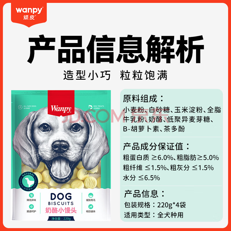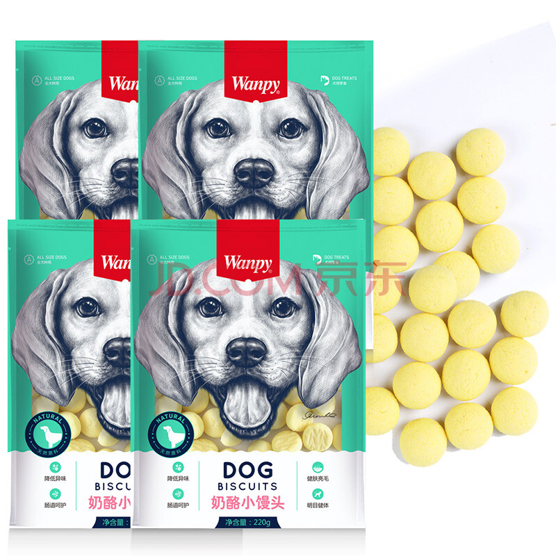 商品相册:顽皮(Wanpy)狗零食 奶酪小馒头880g(220g*4袋) 成犬宠物狗狗零食饼干第