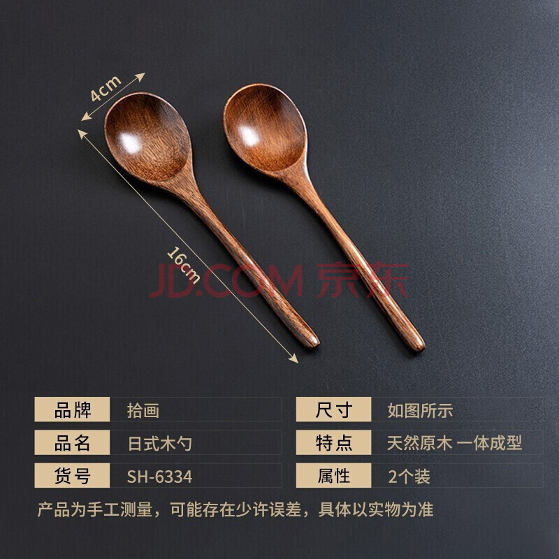 商品相册:拾画 原木勺子 牛奶咖啡小调羹 日式木勺子2支装 SH-6334第