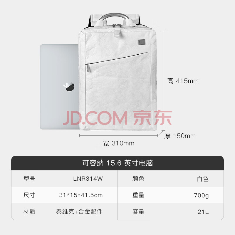 商品相册:乐上(LEXON)双肩包笔记本电脑包15.6英寸双隔层大容量男书包女泰维克纸包白色第