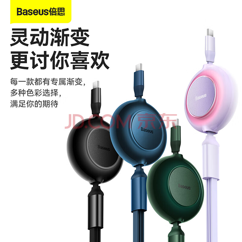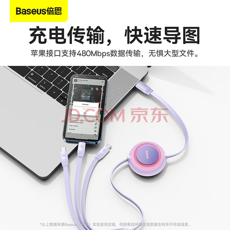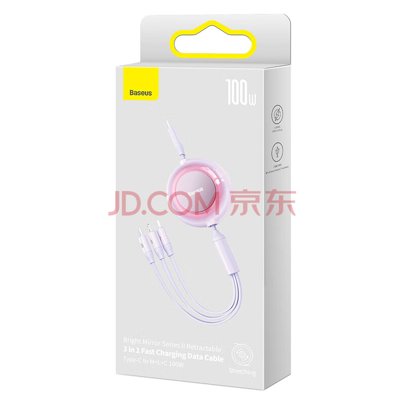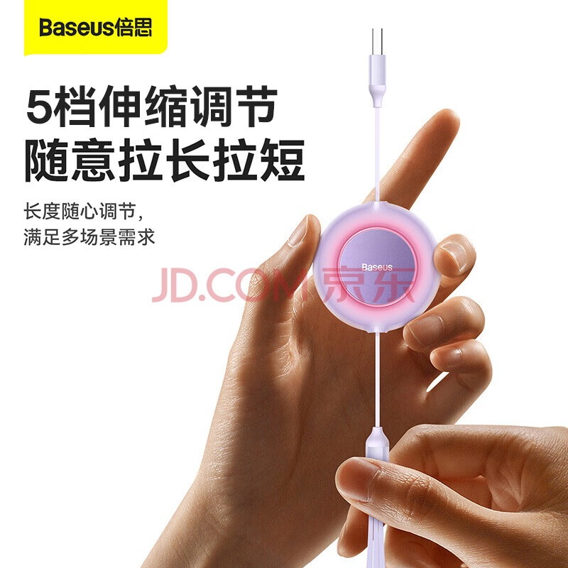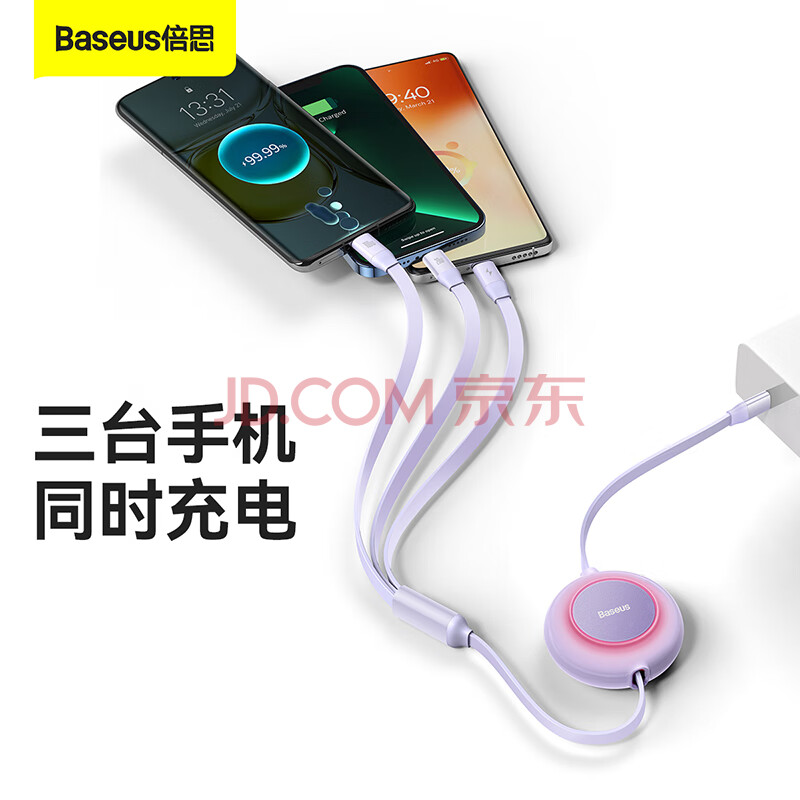 商品相册:倍思Type-C数据线三合一伸缩线PD100W5A快充一拖三适用苹果17/16/15/14小米华为mate70手机平板车载 紫第