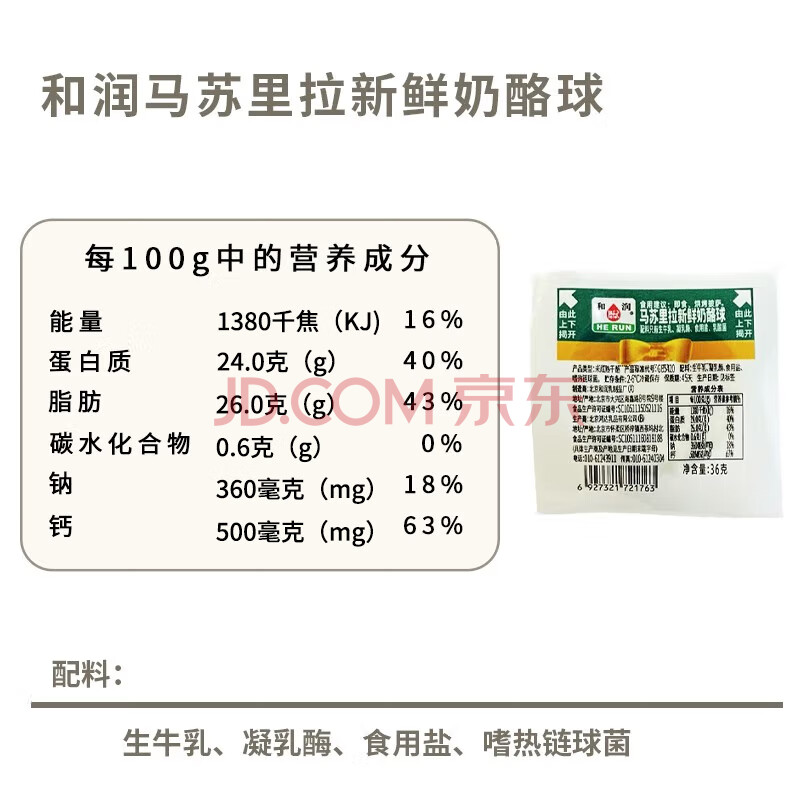 商品相册:和润 马苏里拉 新鲜奶酪球 36g*4个 儿童零食 即食奶酪 家用烘焙原料第