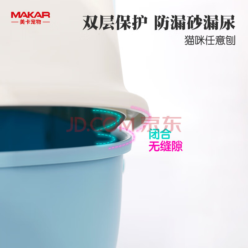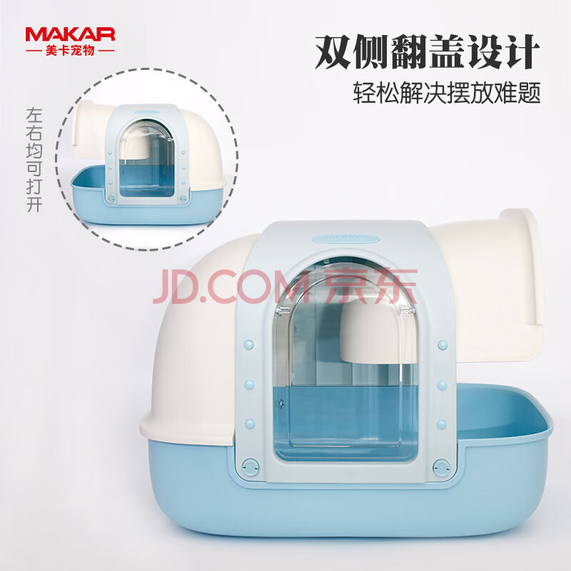 商品相册:美卡时尚龙门客栈全封闭猫砂盆 特大号双翻盖猫厕所隔臭防外溅天蓝色第