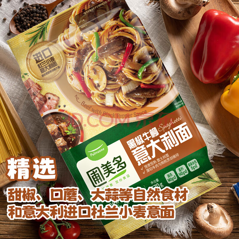 商品相册:圃美多黑椒牛柳意大利面2人份 570g 方便面速食面条 早餐开学季第