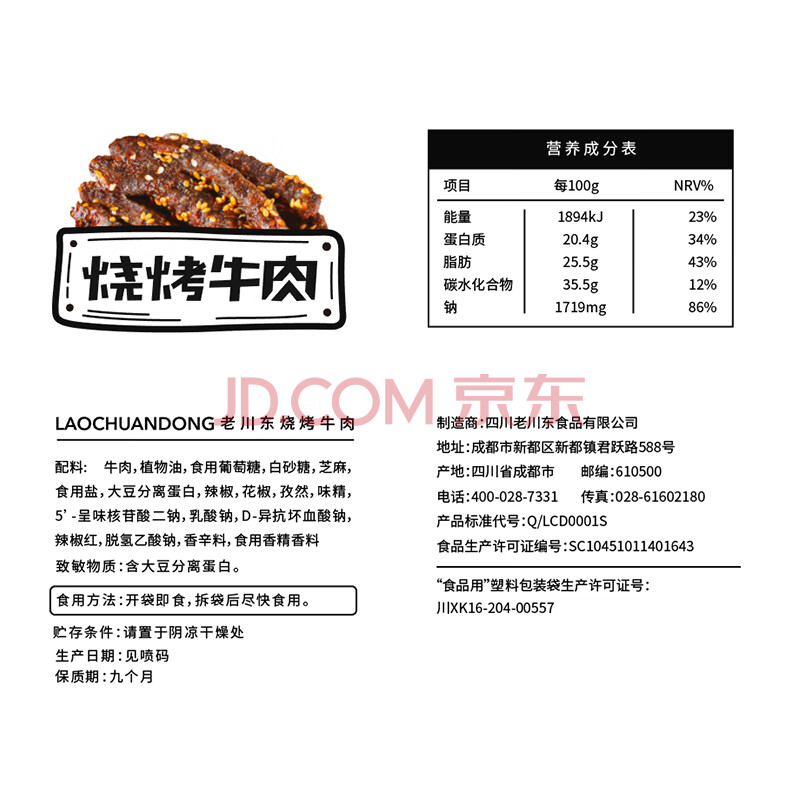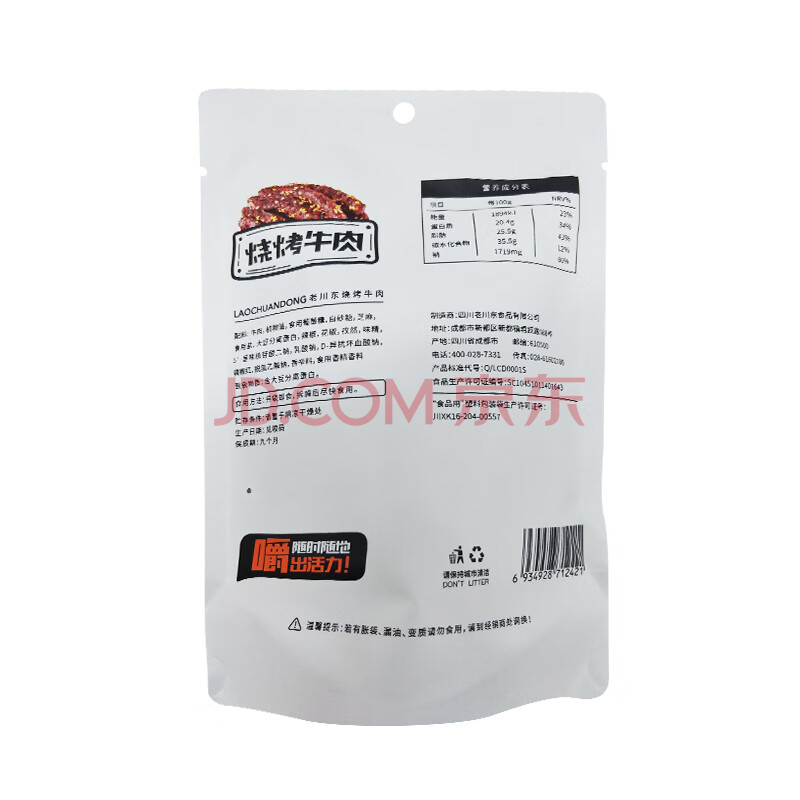 商品相册:老川东 麻辣牛肉干 烧烤味100g 休闲零食 牛肉干肉脯 独立小包第