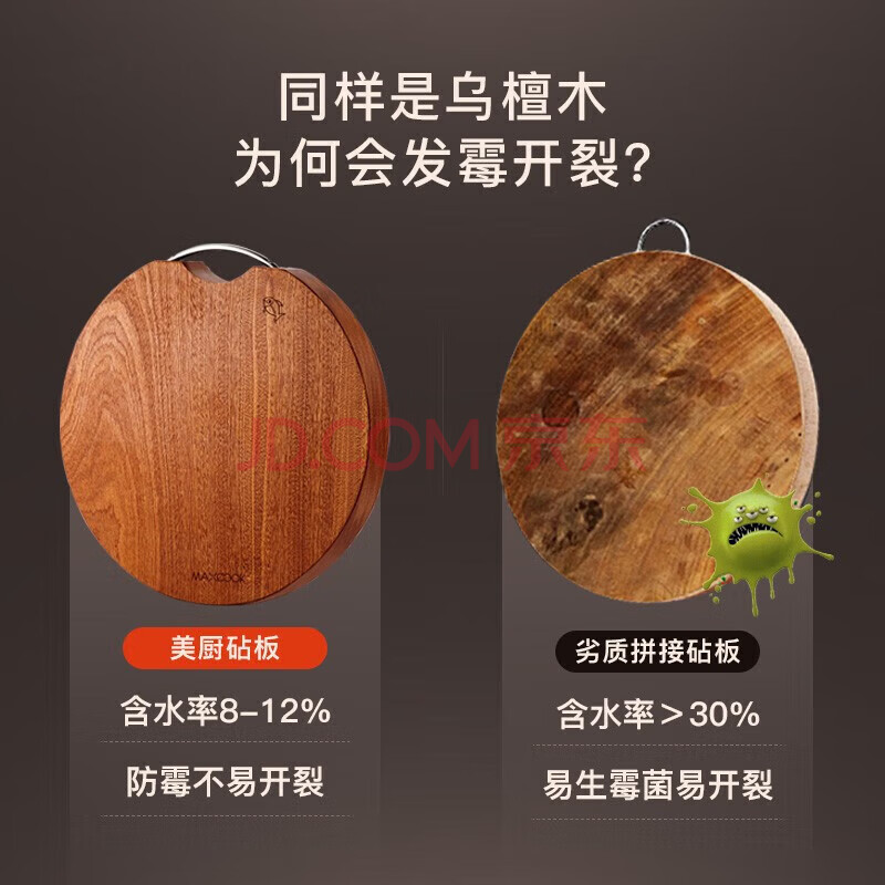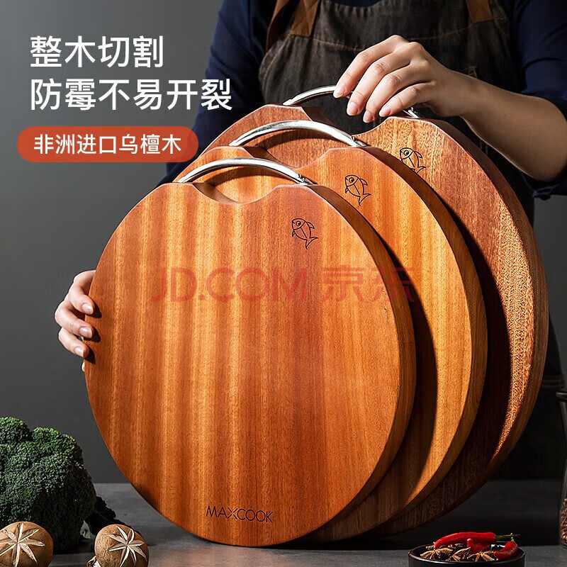 商品相册:美厨(MAXCOOK)乌檀木砧板切菜板 圆形案板剁肉墩家用加厚实木粘板 大号36*3cm第