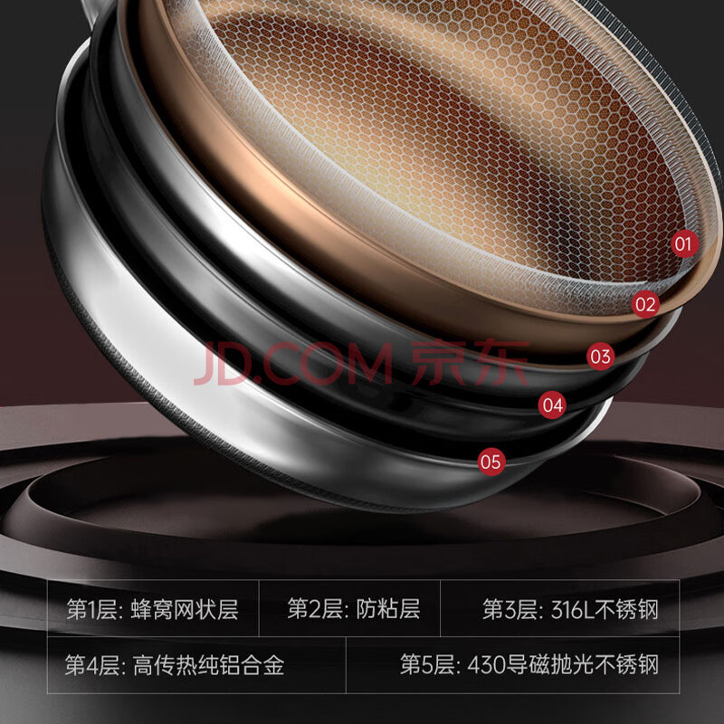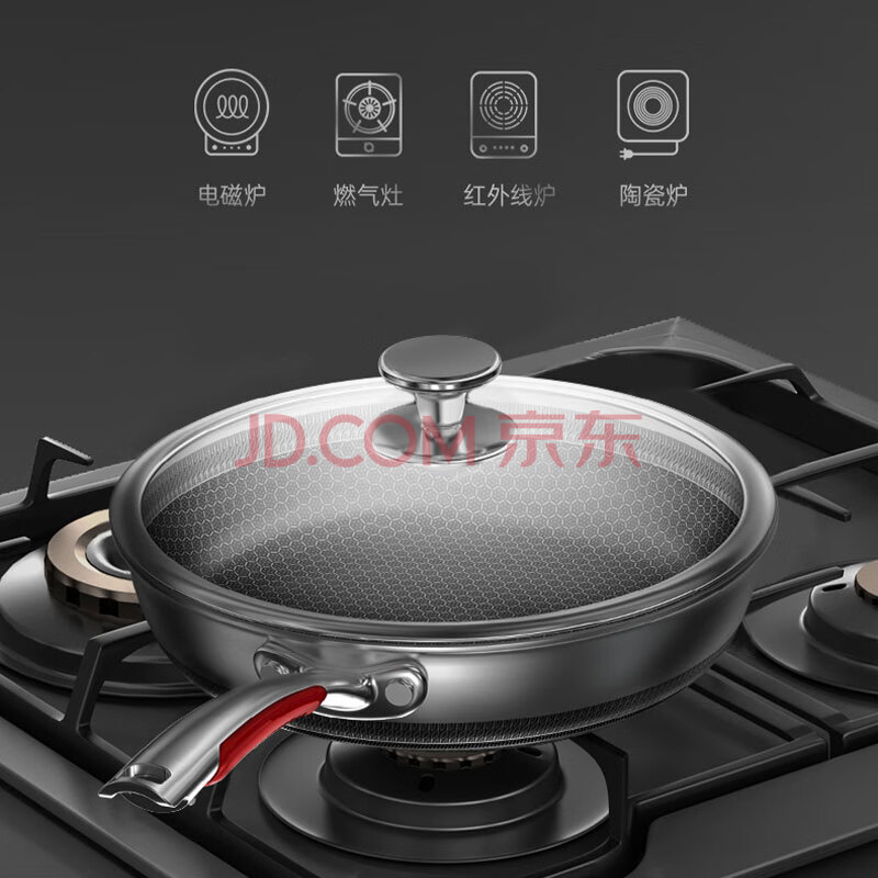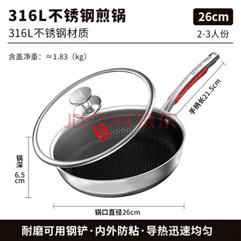商品相册:康巴赫煎锅316L不锈钢不粘平底锅升级双面蜂窝悦厨26cm电磁炉燃气通用第
