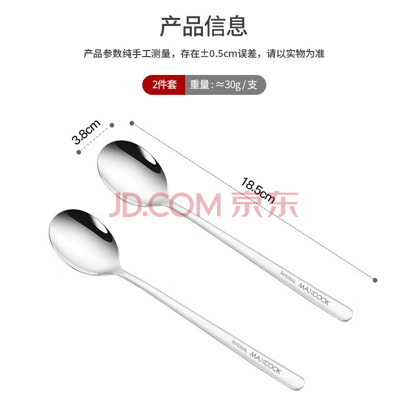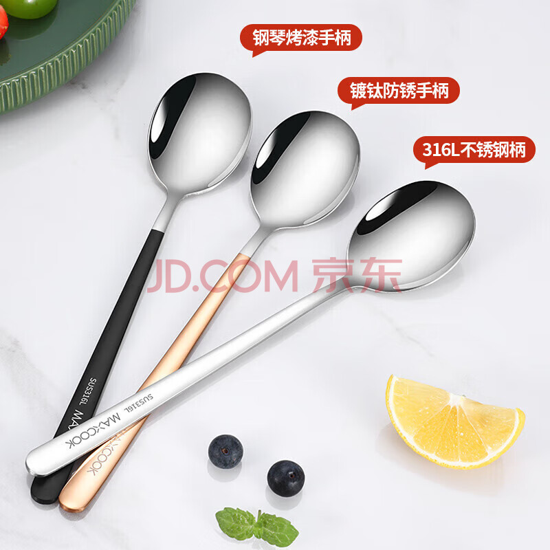 商品相册:美厨(maxcook)316L不锈钢汤勺汤匙 加大加厚勺子圆底餐勺 2件套本色MCGC0200第