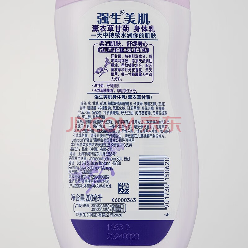 商品相册:强生美肌身体乳薰衣草甘菊200ml保湿补水舒缓滋润润肤乳持久留香第
