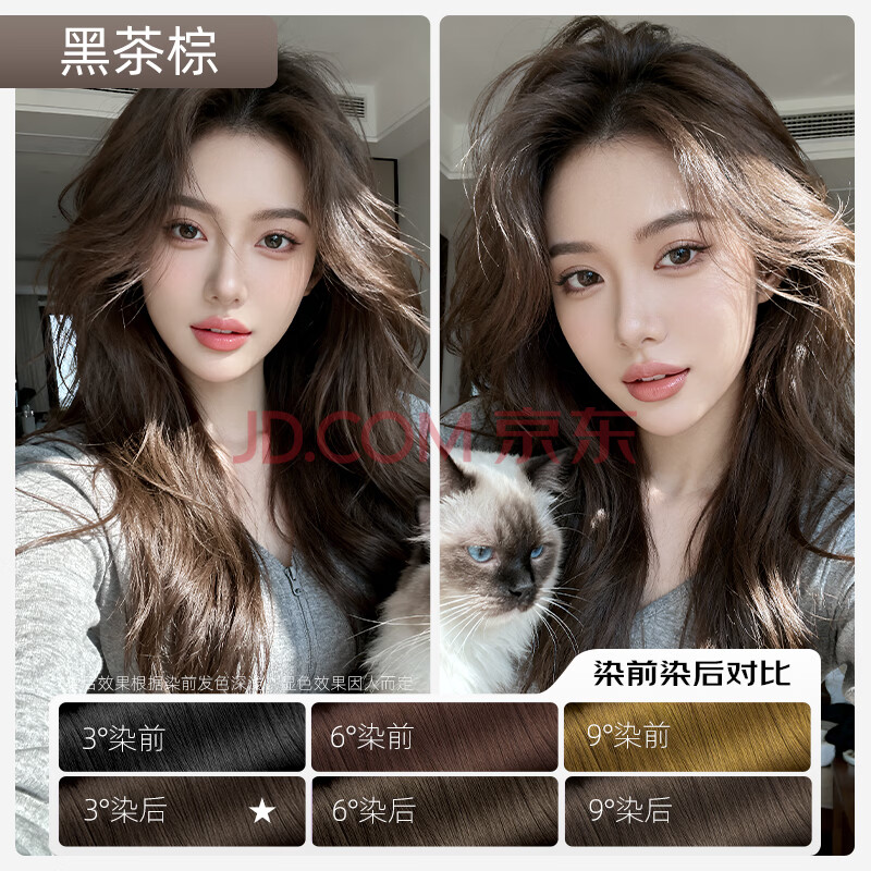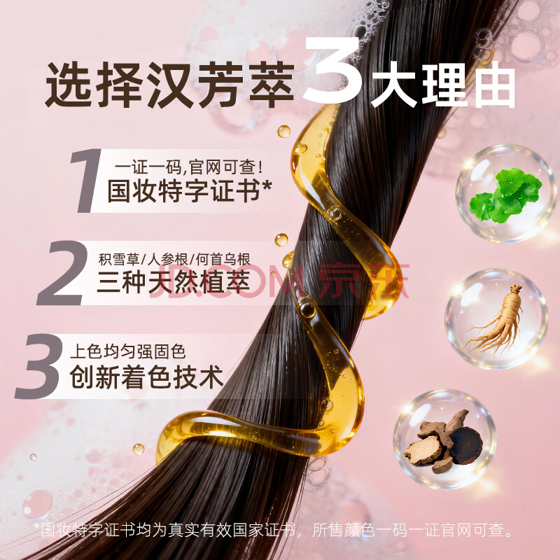 商品相册:汉芳萃(HANFANGCUI)黑茶色染发膏天然植物无刺激盖白染发剂男女士专用非泡泡染头膏第
