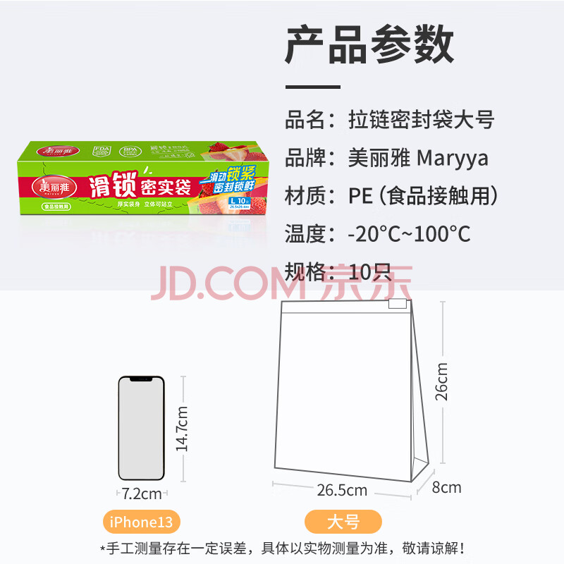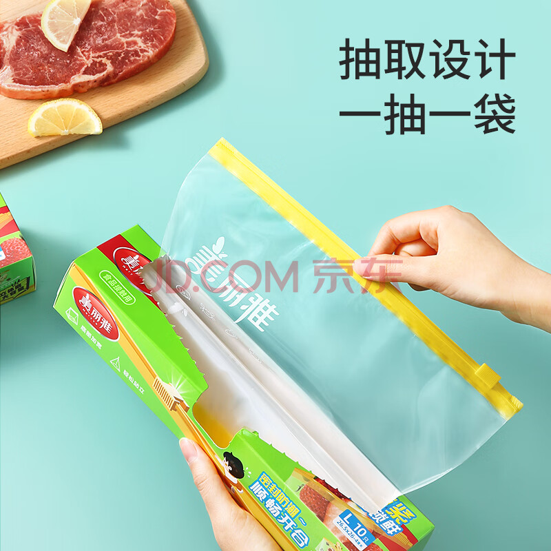 商品相册:美丽雅食品密封袋拉链大号10只加厚一次性厨房冰箱冷藏保鲜透明自封袋第