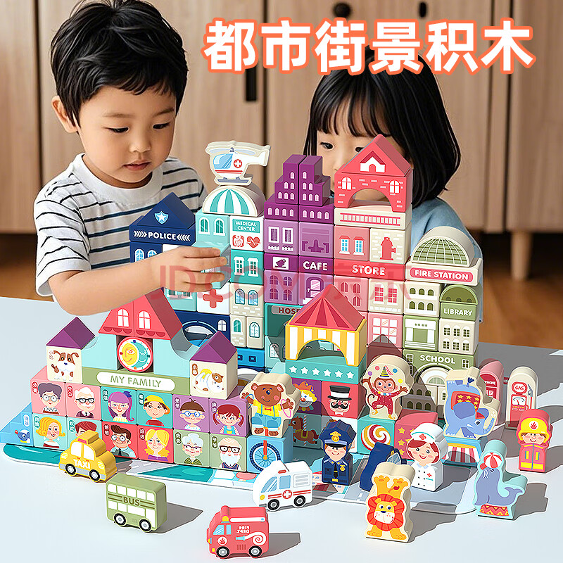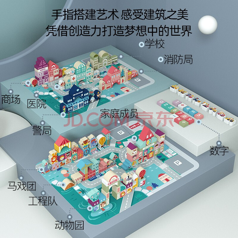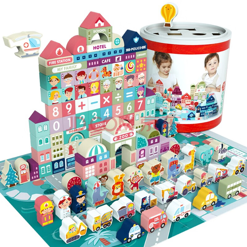 商品相册:木丸子186粒都市街景大颗粒积木儿童玩具男女孩拼装早教积木桶第