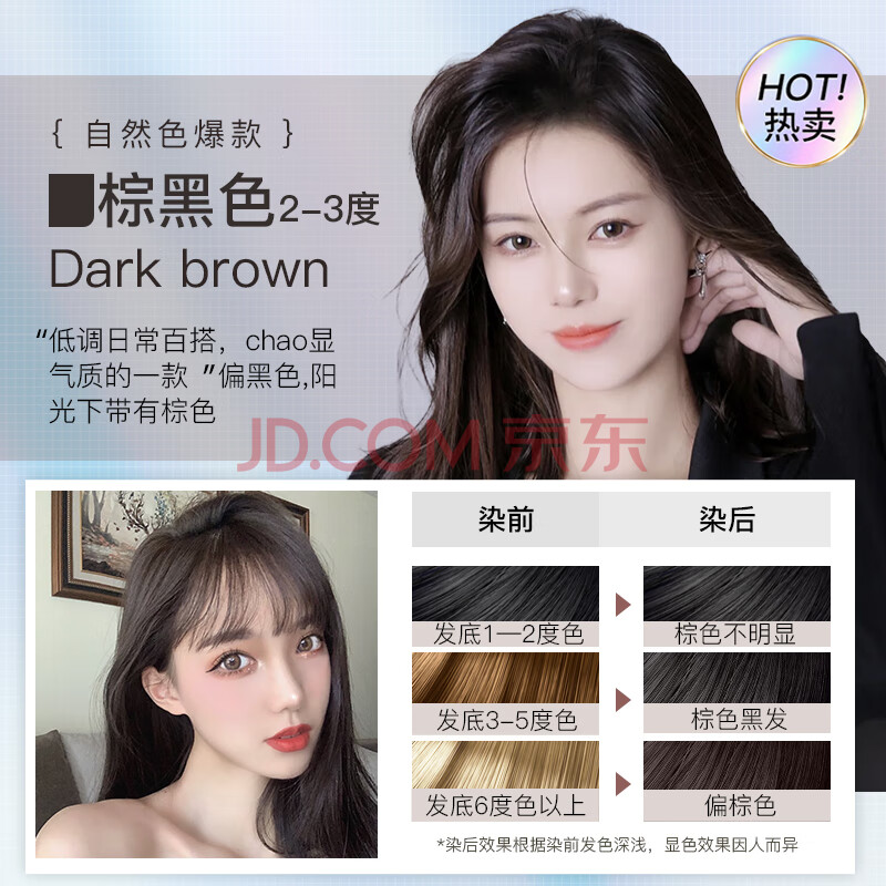 商品相册:靓逸(LIANGYI)易梳彩棕黑色400ml染发剂植物配方纯染发膏盖白头发不沾皮男女士第